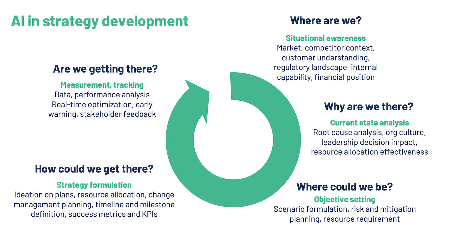 A lot of these stretch techniques are pretty nascent but they show how we’re only really scratching the surface of how AI will change strategy development and implementation. They are less obvious but their value comes from just that - they go beyond efficiency (where many strategists stop right now) and push AI into different territories like reframing, imagination, and discovery. Whilst these remain the parts of strategy that humans are strongest at, they are also ones that AI can now take to a whole new level.